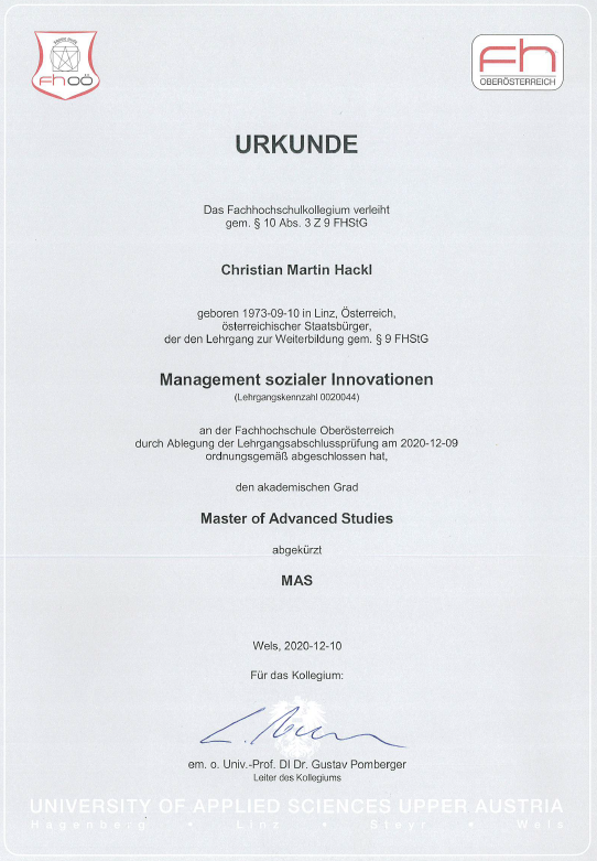 20 Jahre Erfahrung als Führungskraft, zuletzt als Bereichsleitung der ÖHTB Arbeiten GmbH.